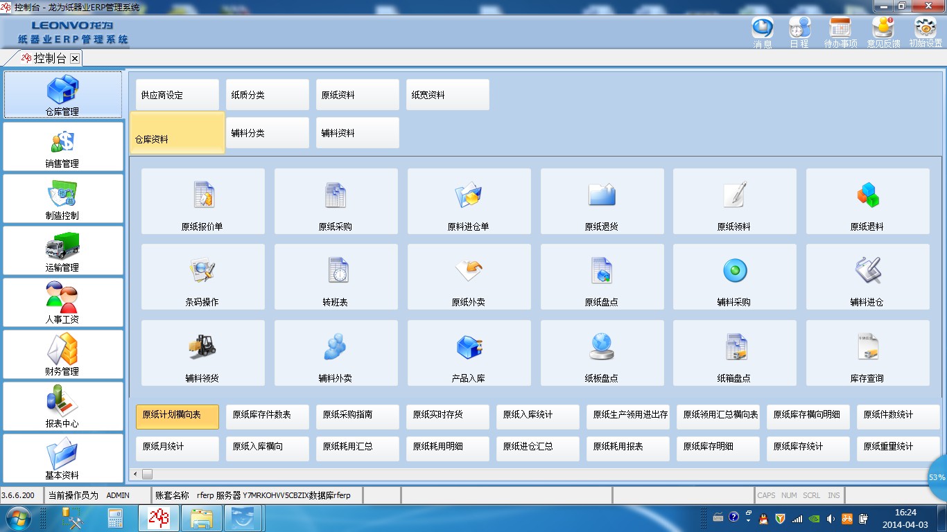 原紙進、出、退庫,全部采用條碼管理,自動生成【原紙庫存匯總、明細表】,為原紙倉庫盤點提供【原紙盤點庫存明細表】【原紙盤點表】,為財務(wù)提供【原紙進倉匯總,明細表】【原紙領(lǐng)料班組出倉匯總,明細表】【原紙進出庫匯總,明細表】【供應(yīng)商對賬單】